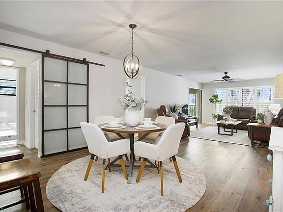 Spectacular opportunity to own a condo full of sophisticated details, located in highly desirable Park Shore area! This 2 bed/2 bath home with covered parking is situated in the charming community of Posada, which consists of 12 sought-after but rarely available units. This fully updated end unit boasts elegant details including a neutral color palette, tray ceiling in the kitchen, induction cooktop, interior glass barn door, and plantation shutters. In the kitchen you will find white cabinets, granite countertops, stainless steel appliances, and breakfast bar seating. You will appreciate the convenience of a built-in Murphy bed in the guest room, and in-residence laundry. Relax and take in the unbeatable sunset views from the privacy of your lanai. As an added bonus, this area is also air conditioned and can be enjoyed closed as a sunroom or pocket the glass panels and enjoy as a screened lanai. Enjoy a heated community pool and BBQ area only steps away. With a location in one of the most beautiful areas of Naples, you can experience the best of SW Florida living within walking distance to the beach. Private Park Shore Beach access is available for a small annual fee. Easy access to world class dining, shopping, entertainment, and much more!