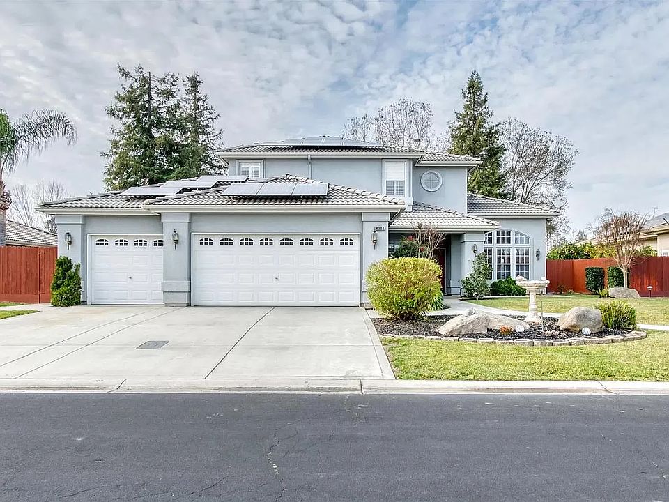 Welcome to 4300 Black Hawk St, a stunning 4-bedroom, 3-bathroom home situated on the 8th hole of the Pheasant Run Golf Course in Chowchilla. Upon entering, you're greeted by high ceilings, a grand staircase, and a formal living room to your right. The spacious formal dining room is located just off the kitchen, perfect for entertaining. The kitchen features ample cabinet space, generous countertops, a breakfast nook, and a bar that opens to the den. The cozy den includes a beautiful built-in cabinet next to the upgraded fireplace. The first floor also offers a bedroom, a bathroom, and an oversized laundry room for added convenience.