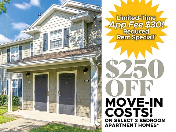 - Special offer! $250 Off Move-In Costs on Select 2 Bedroom Apartment Homes! App Fee only $30!* *Must move in by 1/16/26. Restrictions apply, contact leasing office for details.