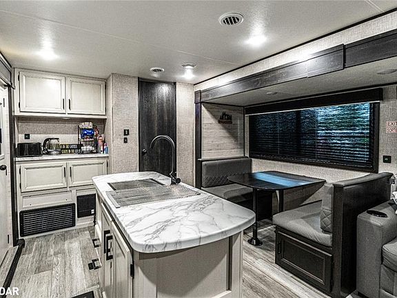 MOVE-IN READY 2023 JAYCO RV IN A RESORT COMMUNITY - THE ULTIMATE SEASONAL RETREAT FOR FAMILY, FUN, & RELAXATION! Tucked away in the Wasaga Dunes Parkbridge RV Resort, this seasonal getaway offers the ultimate combination of relaxation, recreation, and convenience in a peaceful, family-oriented community surrounded by forest. Just minutes from the sandy shores of Georgian Bay, Wasaga Beach, and the scenic trails of Tiny Marsh Provincial Wildlife Area, with everyday shopping and dining nearby in Wasaga and Elmvale, this location is second to none. At the heart of this offering is a beautifully maintained 2023 Jayco Jay Flight 331BTS model, fully move-in ready with a bright and spacious layout designed for worry-free comfort. Set on a private lot, you can unwind around the firepit, entertain on the large deck with awning coverage, or enjoy effortless outdoor dining at the BBQ station complete with a flat grill and mini fridge. Inside, discover a modern kitchen and living room with a centre island, dining area, lounge space, generous prep surfaces, and plenty of storage. A comfortable queen primary bedroom and a separate double bunk room are paired with a well-appointed 3-piece bathroom, enhanced by the added convenience of an outdoor shower for warm summer days. Everything you need for immediate enjoyment is included, from outdoor furniture and TVs to dishes and a golf cart, creating a true turnkey experience. With resort amenities like pools, playgrounds, a bouncy pillow, wide open green spaces, and endless family activities, this is an inviting getaway where carefree summer memories are waiting to be made!