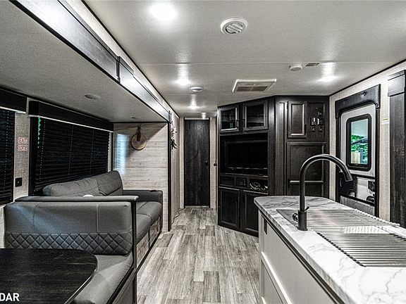 MOVE-IN READY 2023 JAYCO RV IN A RESORT COMMUNITY - THE ULTIMATE SEASONAL RETREAT FOR FAMILY, FUN, & RELAXATION! Tucked away in the Wasaga Dunes Parkbridge RV Resort, this seasonal getaway offers the ultimate combination of relaxation, recreation, and convenience in a peaceful, family-oriented community surrounded by forest. Just minutes from the sandy shores of Georgian Bay, Wasaga Beach, and the scenic trails of Tiny Marsh Provincial Wildlife Area, with everyday shopping and dining nearby in Wasaga and Elmvale, this location is second to none. At the heart of this offering is a beautifully maintained 2023 Jayco Jay Flight 331BTS model, fully move-in ready with a bright and spacious layout designed for worry-free comfort. Set on a private lot, you can unwind around the firepit, entertain on the large deck with awning coverage, or enjoy effortless outdoor dining at the BBQ station complete with a flat grill and mini fridge. Inside, discover a modern kitchen and living room with a centre island, dining area, lounge space, generous prep surfaces, and plenty of storage. A comfortable queen primary bedroom and a separate double bunk room are paired with a well-appointed 3-piece bathroom, enhanced by the added convenience of an outdoor shower for warm summer days. Everything you need for immediate enjoyment is included, from outdoor furniture and TVs to dishes and a golf cart, creating a true turnkey experience. With resort amenities like pools, playgrounds, a bouncy pillow, wide open green spaces, and endless family activities, this is an inviting getaway where carefree summer memories are waiting to be made! Total seasonal park fee is $4926.80.