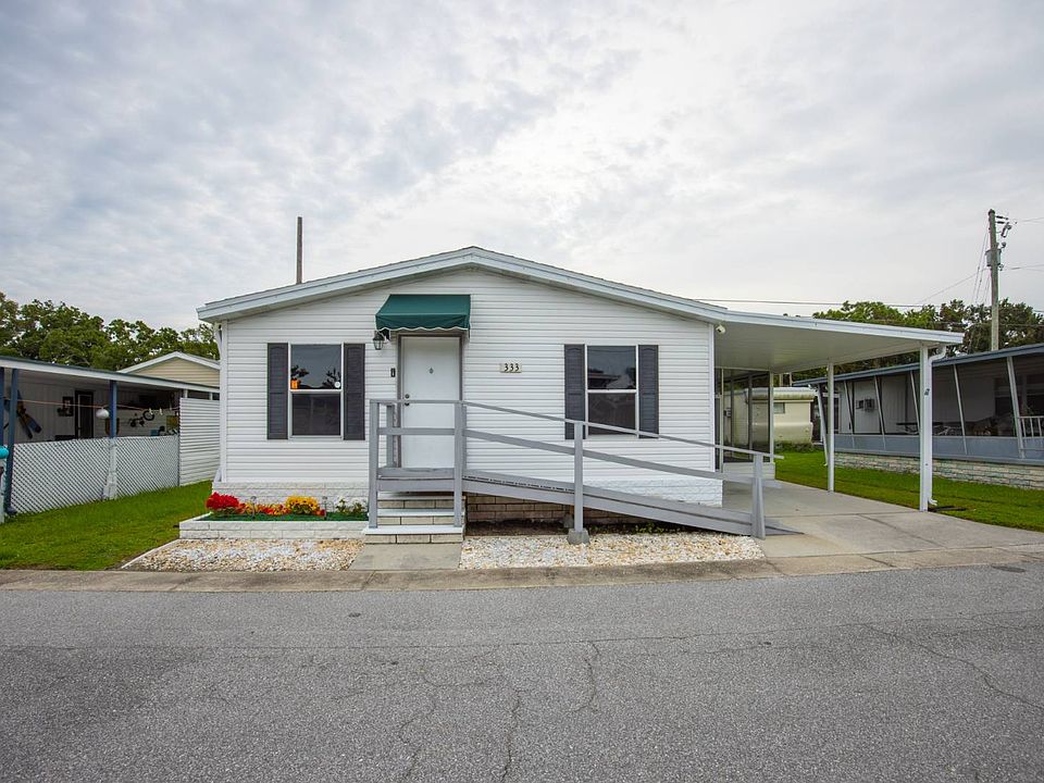 Welcome to your next chapter-a serene retreat thoughtfully designed for comfortable and engaging living. Priced at an inviting $131,000, this spacious 1,800 sq ft mobile home offers the perfect blend of modern updates and a vibrant community atmosphere. Nestled within the welcoming Holiday Ranch park, this home ensures peace of mind with recent significant upgrades. Enjoy the security and comfort of a new roof and front porch awning (July 2024), a new AC unit (July 2024), and brand-new appliances including a stove, dishwasher, refrigerator, washer, and dryer (October 2024). The vapor barrier and hurricane straps were just updated in September 2025, adding an extra layer of protection. Thoughtful additions from 2020 include a durable steel exterior side door, four Ring cameras for enhanced security, and two high-quality treated wood wheelchair ramps for easy accessibility. The windows feature a security tint (2020), offering both privacy and energy efficiency by helping to keep the home cooler. The intelligent 2-bedroom, 2-bathroom split floor plan provides ample space and privacy, perfect for hosting guests or enjoying quiet relaxation. The convenient interior laundry room eliminates the need to carry laundry outside. Holiday Ranch offers a tranquil setting, set back from the road, with fantastic amenities including a refreshing pool, a lively social hall for community gatherings, and shuffleboard courts for active enjoyment. This is more than just a house; it's a lifestyle awaiting you. Schedule your personal tour today and discover why this is truly a wonderful place to call home!