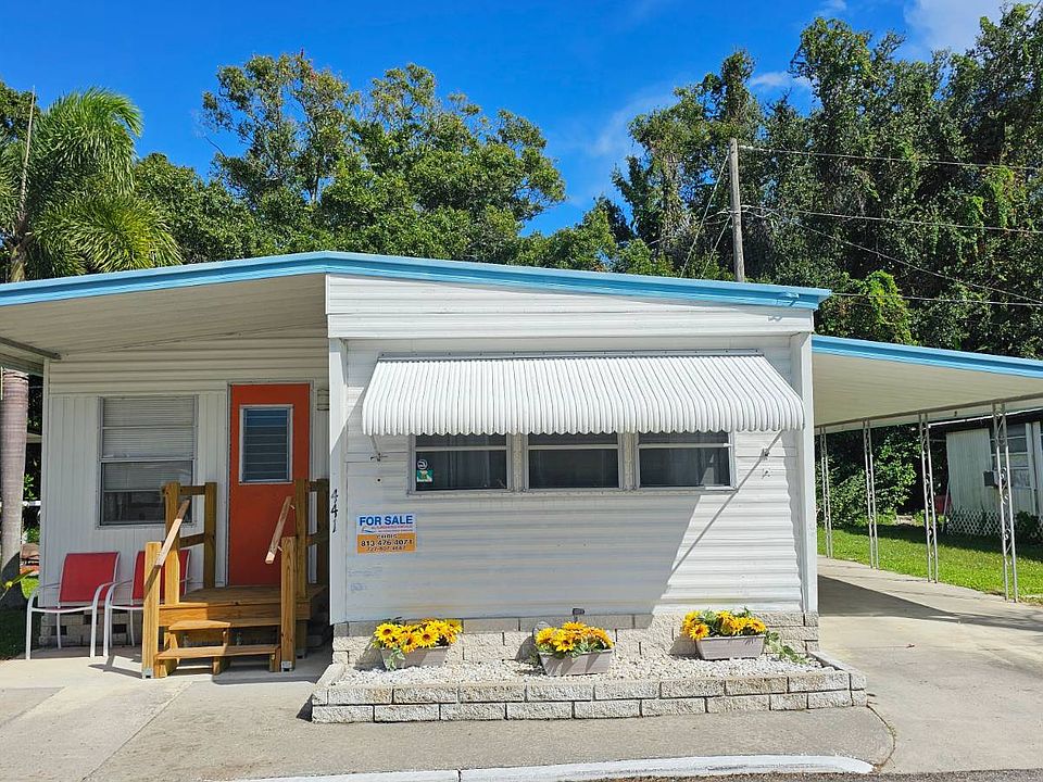 Situated in beautiful Clearwater, FL, Holiday Ranch is just 10 miles from the Coast! Enjoy the sunny Atlantic beaches or the warm Gulf of Mexico. With its on-site clubhouse, shuffleboard courts, and swimming pool you may never want to leave this beautiful age qualified 55+ manufactured home community. Holiday Ranch boasts a location near a wealth of shopping and dining opportunities all within 5 miles. Holiday Ranch also has easy access to public transportation, on-site laundry facilities, and on-site management. The Tampa/Clearwater/St. Petersburg metro area is a bustling area, and Holiday Ranch offers you an escape right in the middle of it. Lot Rent $940 includes water, sewer, garbage, lawn maintenance and full use of the amenities. This fantastic 1 bedroom plus bonus home is fully furnished and turn key! Enter the home from your cute covered porch into your open concept kitchen, dining, living and Bonus Room. The kitchen features newer modern cabinets and counters, stove/oven combo, refrigerator and microwave. The dining Area is perfect for a table that seats 2-4 people and guess what? There is one already there for you! The Bonus Room is just off the kitchen and set up as additional living space. Currently, there is a futon providing a "guest area". Just down the hall you will find the bathroom. The bathroom is nicely updated with a step in shower, large vanity and additional linen storage. A few more steps down the hall is the spacious bedroom. The bedroom is fully furnished and offers two large closets spanning the entire wall. Outside of the home you will find a large covered carport with room for 2-3 cars. At the end there is a shed with washer and dryer. If you love spending time outdoors you will love this back yard! It offers privacy, peace and quite! Do not miss out on this great home! Call Chris TODAY to see this home or make an offer! All listing information is deemed reliable but not guaranteed and should be independently verified through personal inspection by appropriate professionals. All Florida Mobile Home Sales Inc. cannot guarantee or warrant the accuracy of this information or condition of this property. The buyer assumes full responsibility for obtaining all current rates of lot rent, fees, and pass-on costs. Additionally, the buyer is responsible for obtaining all rules, regulations, pet policies, etc., associated with the community, park, or home from the community/park manager. All Florida Mobile Home Sales Inc is not responsible for quoting of said fees or policies.