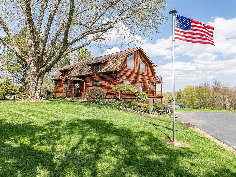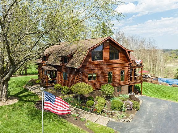 This Gorgeous Log Home Located on 3.3 Areas & Offers 4 Bedrooms, 2½ Baths. You Will Love All of the Warm Wood Finishes Throughout! Spiral Stair Case Leads You to Spacious Loft w/ 2 Bedrooms w/Vaulted Ceilings & Full Bath In between! Entertainers Delight in Your Spacious Kitchen w/Stone Island/Breakfast Bar, Tons of Cabinet & Counter Space. Dining Area Off of the Spectacular Great Room w/Cathedral Ceilings & Pellet Stove. First Floor Offers Primary Bedroom & Generous Closet Space Thru-Out! Second Bedroom/Office if You Choose. Enjoy Your Coffee on One of the 3 Porches. Finished Walk-Out Basement/Rec Room w/Wood Stove! Take in the PEACEFUL SETTING & Watch the Wildlife from The Large Covered Back Porch that Overlooks Private Backyard w/Above Ground Pool. New Pool Liner & Cover, 24x40 Garage/Barn w/Flex Space Above! Shed/Dog Kennel. Over $138,000 in Updates which Includes Fresh Paint Throughout, New Carpet in Office & Primary Bedroom, Geo-Thermal Heating, AC & Hot Water Heater (2011) New Anderson Windows(2014), 50 yr Roof(2006) Complete Exterior Log Stain, Sealing & Chinking (2022) Sq Footage is from recent appraisal.