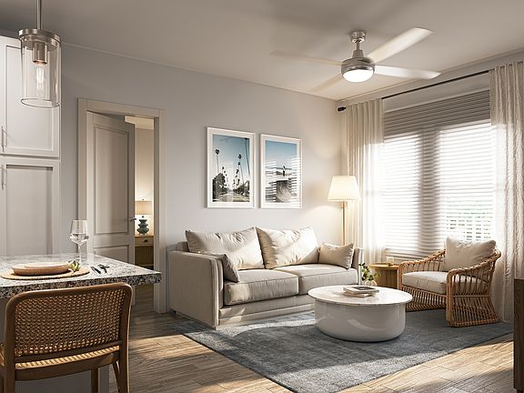 Designed with privacy and functionality in mind, this layout places the two bedrooms on opposite sides of the apartment, making it ideal for roommates or a home office setup. The central living room flows into a welcoming dining area and a modern kitchen with energy-efficient appliances and ample counter space. Each bedroom features a spacious closet and direct access to a full bathroom, offering comfort and convenience. The open-concept design ensures an expansive feel, perfect for relaxing or entertaining.