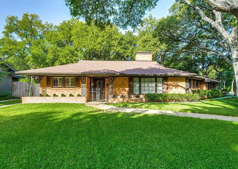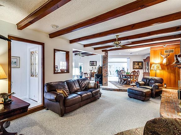 Lovely, beautifully maintained home situated on a spacious lot with impressive trees. Formal living just off the entry. A 2nd living area features mahogany paneling and wood burning fireplace with a wet bar beyond near the doors leading to back patios. Step up to the dining area and then down to a most spacious eat-in kitchen. Kitchen boasts double ovens, 2 drawer dishwasher, electric cooktop, generous island with breakfast bar and a wall of built-ins containing a pantry, storage, TV cabinet & desk. Master bedroom with bay window and en suite bathroom, 2 charming secondary bedrooms with hall bath between. 2 patios, lots of grass & trees in backyard and an oversized garage. This home is ready for new owners!