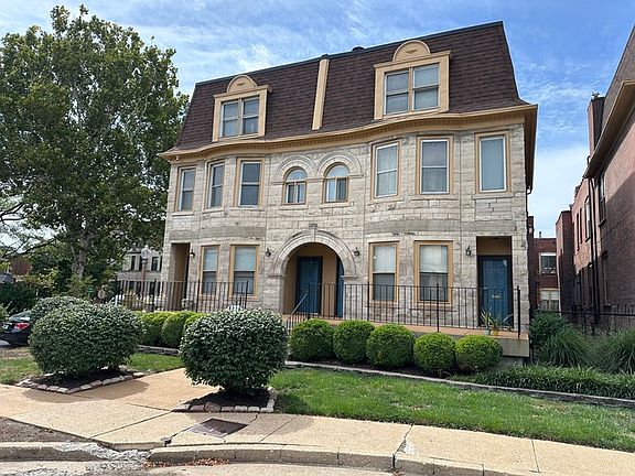 Beautiful architecture circa 1901 ideally located on a private cul-de-sac, this striking and spacious 2 story townhouse condo provides vibrant Central West End living at its best. Close to restaurants, coffee shops, Whole Foods, Wash U Med Center, SLU, Cortex, MetroLink, and Forest Park! Spend summer days next to the pool and BBQ area. Private gated parking included. Walk into the main level with beautiful hardwood floors in the entry way and charming sitting room with bay windows overlooking the open floor plan below. Main level also includes two spacious bedrooms and a full bathroom. Downstairs you'll find the open floor plan with a very roomy feel, perfect for entertaining, recessed lighting complements the light from the bay windows above. The has stainless steel appliances, newer flat panel cabinets and granite counter tops. Downstairs also includes a half bath and the laundry area with extra space for exercising or an office. This property allows self guided viewing without an appointment. Contact for details.