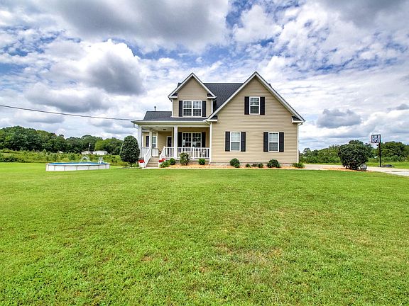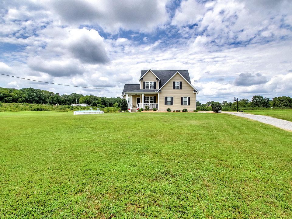 This Impeccable farmstyle home sitting on 3 Level Acres includes a beautiful landscaping of Fruit Trees, wrap covered front porch & back porch, Hardwood floors, stone hearth w/wood burning stove, Granite countertops in a large eat-in kitchen which also includes custom made brick backsplash, Open floorplan, large dining area, Master suite on main level, Large walk-in closets, storage, 2 car side entry garage, above ground pool, Bonus room above the garage.