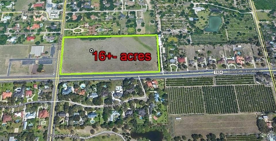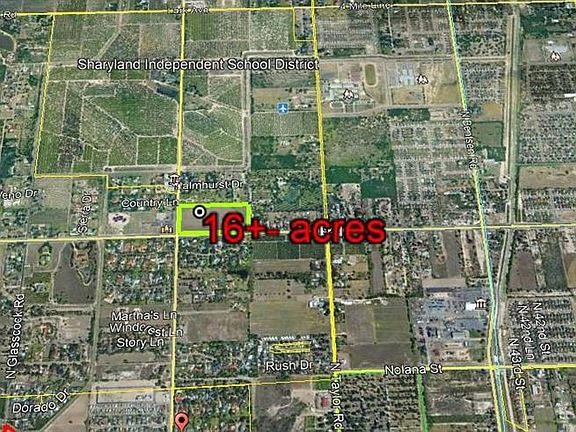 The land is located on the NEC of N. Shary Rd and Buddy Owens/ Mile 3 in Palmhurst Texas ...the Sharyland ISD is the school district pertaining to this tract. Large enough for a Commercial development , large multi-use tract. Over 1200 feet of frontage on Mile 3/ Buddy Owens Rd ... 4 lanes going NORTH & SOUTH with Street light at intersection... 20 minutes from Airport and 10 minute drive to Expressway 83/ 2. Super high traffic count everyday , located between two Sharyland ISD high schools. Sharyland HS to the south and the New Pioneer HS to the north. High end homes surround this tract, average home price $350,000.00 to $650,000.00...