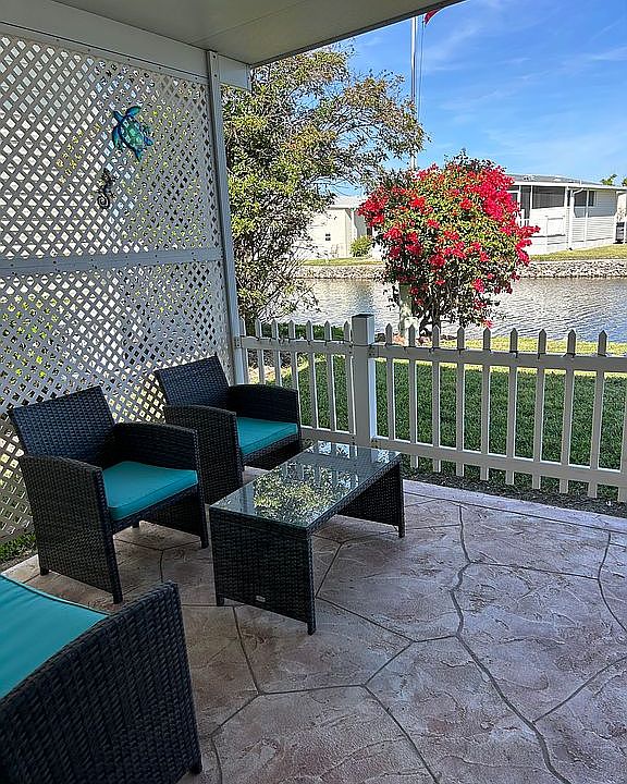 Turn-key updated remodeled home! New appliances, furniture, flooring, 3 split mini air/heat units, bathroom with ceramic tiled showers! Rear enclosed Lania & outdoor Patio overlooking canal! Home is conveniently located across from community Pool & steps away from Clubhouse! Riverside Forrest Village is a Land owned active community within minutes of shopping, restaurants & Punta Gorda Airport! Your low monthly maintenance fee $255 includes Lawn care, garbage pickup, water & basic cable TV!