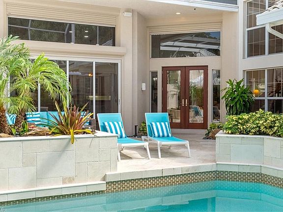 Experience the perfect blend of elegance and leisure in The Sanctuary at Bonita Bay, an exclusive enclave celebrated for its natural beauty and world-class amenities. This exceptional residence places you at the heart of a community designed for those who appreciate an active, sophisticated lifestyle. Fabulous tropical courtyard home with southern exposure and breathtaking lake views. From the moment you enter the circular drive and through the double front doors, the expansive courtyard and serene water vistas create an unforgettable first impression. Nearly every aspect of this home has been thoughtfully updated, offering refined style and comfort throughout. The interior features spacious, open-flowing rooms with architectural detail, beautiful shell stone and wood flooring, a gourmet family kitchen, and volume ceilings that enhance the natural light. Additional highlights include a 3-car air-conditioned garage, outdoor kitchen, and a whole-house generator. The private cabana provides two comfortable guest rooms, perfect for visiting family and friends. An expansive lanai spans the rear of the home on both levels, overlooking the lake, ideal for entertaining or enjoying tranquil sunsets. Every detail of this residence reflects quality and care, making it truly exceptional and showing like a model home. Residents of Bonita Bay enjoy access to five championship golf courses, tennis and pickleball, state-of-the-art fitness facilities, parks, miles of walking and biking trails, a private beach club, and a full-service marina with direct Gulf access. The community’s luxurious 9,000-square-foot Spa and Salon offers the ultimate in relaxation and rejuvenation, featuring seven treatment rooms, sauna and steam rooms, a whirlpool, and a tranquil relaxation lounge. Full spa services are available, along with a dedicated women’s hair and nail salon and a men’s barber. Dining options abound at Bonita Bay Club. The elegant Fireside Room provides a refined dining experience, while the Club Room offers resort-casual ambiance for both indoor and al fresco dining. For golf enthusiasts, optional Bonita Bay Club membership offers premier courses, fine dining, wellness programs, and a vibrant social community. Beyond the gates, downtown Bonita Springs beckons with upscale restaurants, artisan breweries, boutique shopping, live entertainment, and seasonal art festivals. Discover the best of Southwest Florida living at 4300 Sanctuary Way, where every day feels like a getaway.
