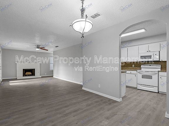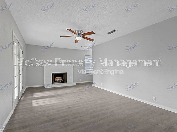 Brick gas fireplaceNeutral paintOpen floor planPrivate enclosed backyardAbundance of natural lightWood-like flooringCovered patio