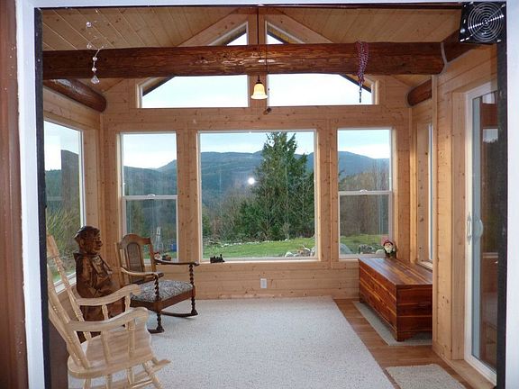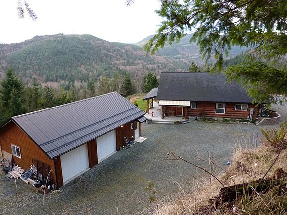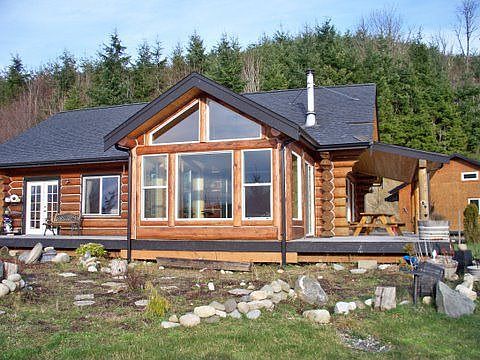 True Log Home on 5+ breathtaking, private acres. Vaulted ceilings, custom pine cabinets, wood floors, tile bath with jacuzzi tub and shower, french doors off master to deck, light and bright with enclosed sun/bonus room. Over 1000 sq. ft of decking, newer 24X36 detached garage with loft storage, 10X10 storage shed. Views to the south or lake Samish & valley and Bellingham Bay to the West. Gated private paved road completes this wonderful property.