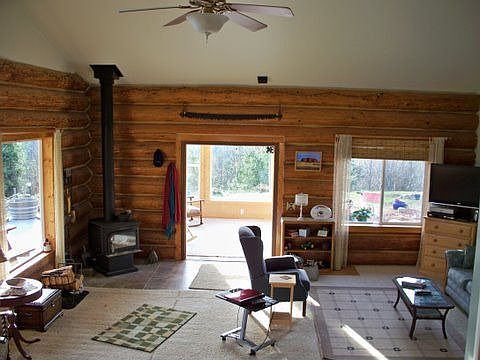 - Exterior features: log half-round
