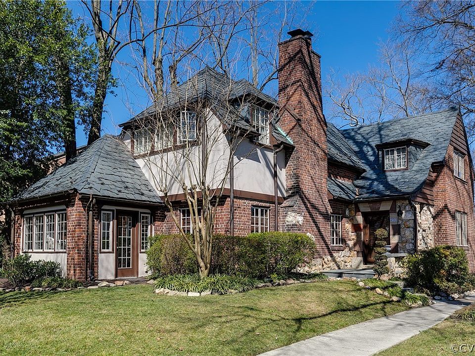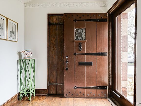 Built in 1926 and designed by noted architect Carl Lindner, this striking Tudor Revival offers all the architectural charm and craftmanship of the era with the snaggletooth slate gable roof, leaded group casement windows, and copper gutters. The stately stone and brick entrance invites you into the foyer with plaster walls and embellished crown. The wide plank oak floor takes you to the beautiful, spacious Living Room with a limestone gas fireplace, rough beamed ceiling, French doors to a private patio and fountain. The sunroom/ office has lots of light and a door to the patio. The dining room with its French doors taking you to the terrace with another fountain, and connecting to the kitchen with some newer SS appliances, granite counters, and a quaint dining nook. The finished, waterproofed basement, off the kitchen has an exterior entrance and is the perfect playroom or family room. The full-sized laundry room has a SS wash sink and tiled floor. As you go up the wide staircase, notice the original stained-glass window flanked by built in bookcases. The primary bedroom has 2 closets, en-suite bath, and plenty of light! There are three more bedrooms and 2 bathrooms. This home has so much to offer and is perfect for entertaining. The established boxwood garden, camelia trees and slate patio create the perfect entertaining space. This friendly neighborhood welcomes the next owners.