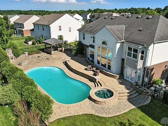 Tucked within Miamisburg's coveted Crains Run community, 4300 Turtledove Way offers a rare blend of refined interiors, flexible living space, and luxurious outdoor amenities—crafted for modern comfort and effortless entertaining. This expansive home features over 4,500 sq ft of living space, including six bedrooms and four full bathrooms. The main level showcases hardwood cabinetry and a spacious kitchen island that seamlessly connects to both formal and casual dining areas. An electric fireplace in the great room adds a touch of warmth and sophistication. Downstairs, the finished basement offers even more versatility with a wet bar and a private theater room—perfect for movie nights or hosting guests. Step outside to a backyard oasis. A raised stone patio overlooks the heated pool and elevated spa, complete with waterfall and lighting features, all controlled by the IntelliTouch system. A covered outdoor kitchen and a stone fireplace with built-in seating create the ultimate space for year-round entertaining, framed by elegant stone landscaping. Blending smart upgrades with timeless style, this home is a standout in one of Miamisburg's most desirable neighborhoods.