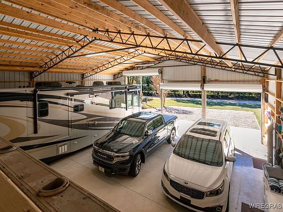 Pole Barn: A huge space with room for a Class A RV (with 50-amp hook-up) and two cars.
