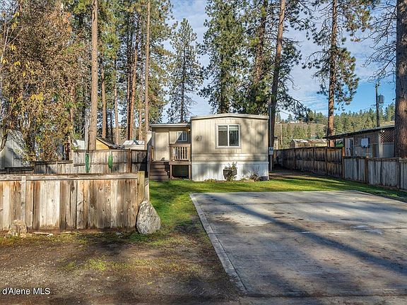 This is IT! Pride of ownership throughout in this renovated single-wide that feels larger and younger than it is! Conveniently located park near HWY's 90 and 41 in Post Falls. The hot tub and shed are staying. The rear yard is fully fenced. Extra storage closet on the rear deck. Great first-time home buyer or downsizer opportunity. A real value at this price! Newer updates include LVP flooring, siding, NEW paint, some new fencing and so much more! Come see your new home! You will love it!