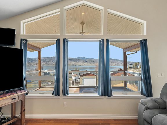 Come enjoy the breath-taking views from this gorgeous custom built home that is just a short walk from the beach. The home boasts a gorgeous great room with cathedral ceiling and kitchen with hickory cabinets, Cambria Quartz counter tops, air conditioning, forced air heating and many other amenities. The primary bedroom is spacious with a walk-in closet and a 5-piece ensuite. A massive wrap-around deck adds to the viewing enjoyment opportunities. Downstairs is semi-finished with a full bath, bedroom, family room, laundry room and a roughed-in kitchen. Come add your touches. The 2 car garage has extra room for a shop plus a 3/4 bath and kitchen extra. Don't miss the RV parking with power, water and dump. All this along with an HOA pool, community building, park and airstrip. There is a path to the beach a half a block from the home. The community building includes shuffle board, ping pong table, darts and Foosball. Volleyball net and covered picnic tables a plus. 7 Bays marina handy for boat launching.