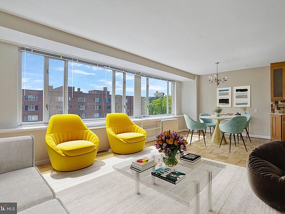 PRICE IMPROVED FOR QUICK SALE! Step into this sunlit two-bedroom, two-bathroom end unit situated on the 6th floor within the sought-after Greenbriar condo. Boasting 1,233 square feet of living space and an open floor plan, this unit welcomes you with a striking wall of large windows, offering breathtaking views and abundant natural light. Did I mention the view of National Cathedral from your living room? Freshly painted, the unit features exquisite parquet floors throughout, excluding the kitchen. The kitchen has been tastefully updated with high-end maple cabinets, a designer backsplash, and stainless-steel appliances. The master bedroom includes two closets, while the master bathroom features a window and a walk-in shower with a frameless door. The guest bedroom benefits from windows on both sides of the wall. With ample storage space, including six closets within the unit and an additional storage locker in the lower level, you'll have plenty of room for your belongings, luggage, and bike. Parking is hassle-free with one unassigned permit spot in the parking lot, and visitor parking is conveniently located in front of the building. Condo fees cover all utilities. The Greenbriar at Cleveland Park provides 24-hour secured entry and concierge services. Enjoy a range of amenities including a gym, a new electric car charging station, a spacious laundry room with a community library, and a charming garden at the front. Don't miss the opportunity to relax on the wonderful rooftop deck, soaking up the sun and admiring the skyline views. On-site maintenance team is available to handle any repairs within your unit. View the list of In-Unit Maintenance Services provided at NO CHARGE from the document section. Plus, this pet-friendly building is ideally situated next to American University, near the National Cathedral, restaurants, Wegmans, and neighborhood parks. Top ranked schools.