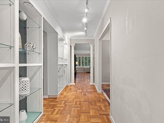 Step into this oversized 3BR/2BA condo offering 1,845 sq. ft. of light-filled living in the sought-after Greenbriar community. A rare end-unit, it features windows on three sides and a private balcony off the living room—perfect for enjoying fresh air and natural light throughout the day. The gracious foyer, framed by custom bookshelves and elegant columns, leads into a spacious living room where plantation shutters accent the corner windows. The formal dining room flows seamlessly into the beautifully renovated kitchen, designed with granite countertops, deluxe white cabinetry with under-cabinet lighting, stainless steel appliances, a glass subway tile backsplash, built-in desk with shelving, and a generous walk-in pantry—combining style with everyday function. The primary suite includes two closets and a renovated marble bath with sleek vanity, marble flooring, and timeless subway tile. A large second bedroom with its own walk-in closet shares a renovated hall bath, while a versatile third bedroom—currently used as an office—features custom built-in bookshelves. Additional highlights include parquet wood floors, thoughtfully renovated spaces, and inclusive building amenities such as a 24hr concierge, community gym, off-street parking. Built in 1951, the Greenbriar is a solid brick mid-rise with well-managed grounds, creating a blend of charm, convenience, and peace of mind. Located on a tree-lined street in Cleveland Park, you’ll enjoy neighborhood shops, parks, and easy city access. This home is more than just a condo— it’s a lifestyle defined by space, comfort, and timeless appeal. Welcome home! *Sq Ft taken from the Attached Floor Plan*