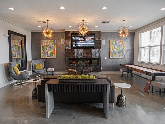 - Exterior features: Brushed Nickel Hardware, Business Center, Car Care Wash Area, Conference Room, Energy Efficient GE Silver Appliances, Free Weights, Garages Available, Luxury 1, 2 and 3 Bedroom Apartment Homes, Open Concept Floor Plans, Outdoor Kitchen, Package Receiving, Personal Intrusion Alarms, Pet Washing Station, Pet-Friendly Community, Spin and On-Demand Room