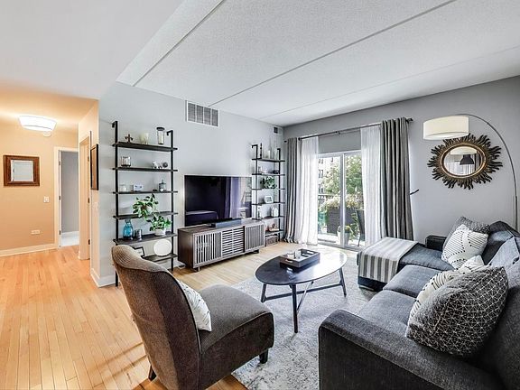 WELCOME HOME to this stunning two-bedroom, two-bath residence in the heart of Buena Park. This sophisticated home showcases a sun-drenched open floor plan with soaring nine-foot ceilings, rich hardwood flooring, and an updated kitchen seamlessly flowing into the gracious dining area and inviting living space. Step onto your private, west-facing balcony-an ideal setting for entertaining, unwinding with a book, or simply enjoying the sunset. Heated garage parking is included, as well as the convenience of an in-unit washer and dryer. Designed with comfort and functionality in mind, this home offers exceptional storage: a large in-unit storage closet, generously sized bedroom closets (including a walk-in closet in the primary suite), and additional secured storage in the building. The serene primary suite features a spa-inspired ensuite bath with a dual vanity, while a spacious second bedroom and full bath complete the thoughtful layout. With only two residences per floor, privacy and tranquility are assured. This home has been updated with premium appliances, including an LG Smart Wi-Fi oven (2025), LG Smart Wi-Fi microwave (2025), LG Smart Wi-Fi refrigerator (2023), and LG Smart Wi-Fi dishwasher (2022). Essential mechanicals have also been replaced, including a new Carrier furnace and central air system (2022). Additional enhancements include new bedroom carpeting with LifeGuard Spill Proof technology, fresh paint, and modern lighting throughout. Perfectly situated, this residence places you moments from shopping (Target, ACE Hardware, Ross, Jewel, Aldi), dining destinations (Michael's, Bar on Buena, Reservoir, North Buena Deli), multiple transit options (Sheridan 151 bus, Broadway 36 bus, Sheridan and Wilson Red Lines), and the lakefront path. Experience the perfect blend of elegance, comfort, and convenience in this exceptional Buena Park home.