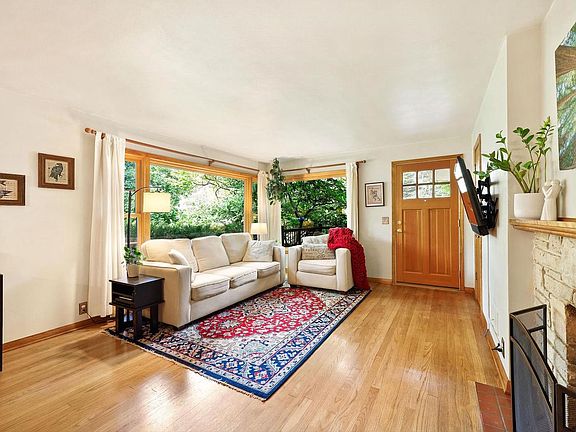 Mid century modern inspired design with huge windows overlooking beautiful perennial garden yard. Sellers finished lower level (2018 with permits), Bathroom renovation (2017), garage storage added (2019), radon mitigation (2020), Prof paved patio w/ fire pit (2021), Prof gutter covers (2024), water heater (2024), Ducts prof cleaned (2025), roof (2001), Furnace (2008), Kitchen remodel (2006), Andersen windows (2011-2014), Marvin windows (kitchen 2011-2014), hard wood flooring, wood burning fireplace, flower paradise w/ dozens of species of trees and flowers! Seller says, "every week is a new story in the yard" about the various gardens. Over a dozen Peony bushes! Close to schools, Nakoma Country Club and Arboretum! Entrance on Whenona. 13 Mins to Epic!