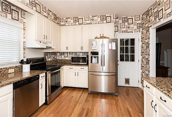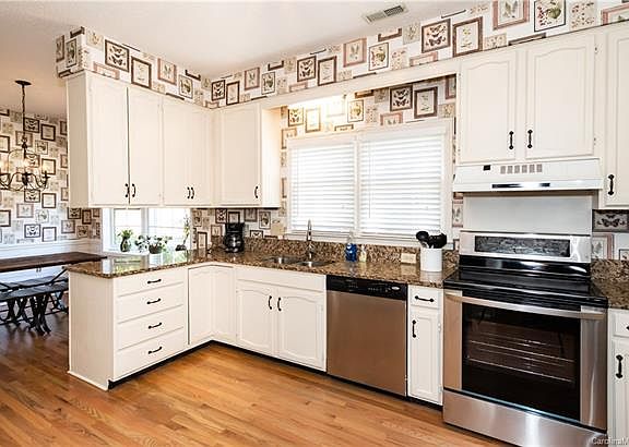 Beautiful ranch with all the charm located in sought after Wellington. Gleaming hardwoods throughout & features 4 bedrooms or use one for your office & 2 full baths. Master suite has large walk-in closet & bath has double vanities. There are 3 more spacious bedrooms. Kitchen is updated with stainless appliances, new updated pulls on cabinets, lighting and plenty of cooking space on the granite counters. Enjoy meals at the kitchen bar or in the breakfast room that has beautiful views from the large bay window & seat. There is also a separate dining room for family gatherings. Relax in the heated & cooled sun room with plenty of windows & french doors lead out to the spacious deck. Plenty of space for entertaining your family & friends. Close to restaurants, shopping, golfing, I-85, I-485 & I-77.