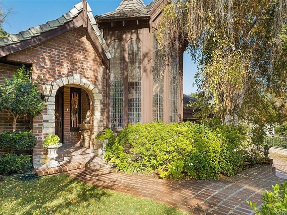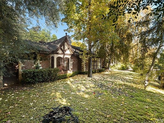 Royal Oaks Manor Spectacular entry with mirrored ceiling. Huge living room with bay window. Formal dining room with custom 13 ft. leaded bay window, beams with corbels, finials and oak wainscoting. Entertainment room features oak wet bar with framed mirrors and French doors to the patio. Secluded private office overlooking patio. Spacious master suite with custom windows in sitting area and French doors leading to private deck viewing the backyard. Expansive property features - private hillside retreat with pool house, large pool, spa, barbecue and a view of the stars.