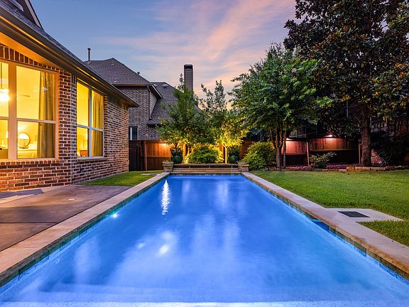 STUNNING 4-BR HIGHLAND HOME W POOL – MOVE-IN READY! This exceptional Highland home on an interior lot is a rare gem in one of Prosper ISD’s most coveted communities, Whitley Place, zoned to the highly acclaimed Walnut Grove High School. Impeccably maintained by its original owners, this beauty exudes charm, elegance, and modern comfort. Step onto the inviting front porch and into a home filled with designer touches, soaring ceilings, and rich hardwood floors. The open floor plan is perfect for entertaining, featuring a grand living space with a show-stopping fireplace, an executive office with custom built-ins, and a chef’s kitchen with premium finishes and stunning pool views. The primary retreat is a true sanctuary, offering serene views of the sparkling pool and a spa-like en-suite bath. Each bedroom is spacious and thoughtfully designed, providing comfort and privacy. Upstairs, enjoy endless fun with a spacious game room and luxurious media room, perfect for movie nights and game days! Step outside to your private backyard paradise! A stunning pool, expansive covered patio, and lush landscaping create the ultimate space for outdoor living and entertaining further enhanced with areas for lawn games. Recent upgrades, including a new AC unit, pool pump, and water tanks, ensure peace of mind. Community amenities incl two pools, nature trails and is conveniently located near shopping, restaurants, entertainment and highways. This home is the perfect blend of luxury, style, and convenience! No MUD or PID tax!