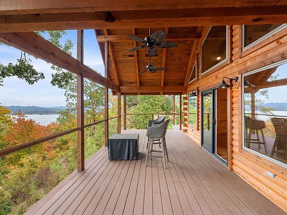Stunning sardis lake viewsSatterwhite log homeTop-grade finishesSplit layoutStone fireplaceBear creek floor planComposite decking