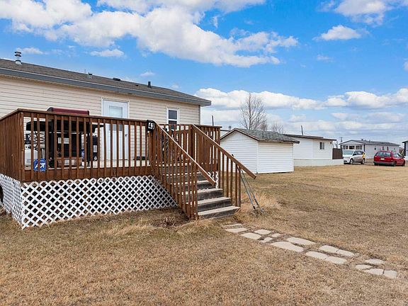 Located in Eastwood Trailer Court, this mobile home constructed in 2011, boasts over 1500 square feet of space. Featuring three bedrooms and two full bathrooms, the primary bedroom offers a luxurious walk-in closet for ample storage. The open concept kitchen is equipped with a spacious island complete with sinks and dining area, along with built-in oven and stove top for culinary convenience. A grand entryway welcomes guests into the residence, while a sizable deck provides outdoor relaxation and entertainment space. Additionally, a shed offers practical storage solutions for tools and equipment. Lot rental fee is $650.00 a month which included garbage, water , and taxes or choose to move to your special spot or even the lake. check it out and view the 3D tour.