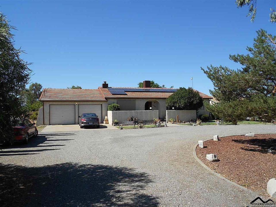 The circular driveway makes it easy to access the garage or park in the shade of the trees. Country style home with stucco siding and tile roof. 3 large bedrooms, 2 full baths, one with full size tub and the other with a large shower. 4 to 6 people can fit in the Legacy Whirlpool hot tub located outside the master bedroom. Extra large closets in hallways and bedrooms. Wide hallways for wheel chair access. New paint in home except in two bedrooms. Wood stove in living room. Shop is 1200 square feet with 220 wiring for welding, half bath, garage door, lots of workspace. RV parking with clean out and water and electric hookups. 1.8 acres is fenced. Property is zoned for animals. Water faucets scattered around the property. Close to town, freeway, shopping, and restaurants. A lovely place, must see it.