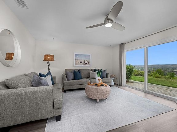 Welcome to this beautifully updated, single-story end unit home located in one of Oceanside’s most peaceful communities. With no neighbors behind you and sweeping views from the back patio, this home offers the kind of privacy and tranquility that’s hard to come by. Step inside to find luxury vinyl plank flooring, dual-pane windows that let in tons of natural light, and a newer A/C and furnace for year-round comfort. The living room features a thoughtfully added sliding glass door creating a seamless indoor-outdoor flow and framing those gorgeous views. The kitchen has been tastefully remodeled with quartz countertops, soft-close cabinets, and a suite of newer stainless steel appliances. The same quartz and cabinetry updates continue in the primary bathroom, offering a consistent, modern aesthetic. You'll love the flexible layout with a cozy and versatile carport-patio area and a relaxing back patio with panoramic views. The scenic surroundings and open views throughout the neighborhood add to the calm, coastal vibe. And you’ll easily enjoy the luxurious pool, jacuzzi, and clubhouse since they’re located just down the way. Fitness buffs will love the on-site clubhouse gym, and everyone can appreciate the stunning views throughout the community. Conveniently close to hwy 76, the 78, 5 and 15 fwys, your grocery runs, shopping sprees, and dining out are easier than ever. And the coast is just a quick drive away. Don't wait – your dream home is calling your name.
