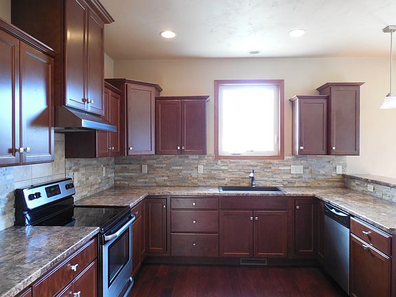 Wonderful New Construction Ranch in desirable neighborhood! Popular open floor plan with stone fireplace, maple mantle, large windows throughout, deck off dining room, stone backsplash, breakfast bar, hardwood and tile flooring, tray ceiling in living room, walk-in closet off master bedroom, double vanities with tile backsplash and walk-in shower in master bath, large first floor laundry, custom built-in nook, two spacious bedrooms and full main bath, locks off back entrance and basement offers daylight windows, stubbed in for future bath and finish. Call today to see!