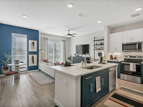 - Exterior features: 24/7 Luxer Parcel Lockers, 42" Custom Cabinets with Contemporary Hardware, Electric Car Charging Stations, Glimpse Lighting Throughout, Moen Plumbing Packages*, Pet-Friendly Community with Onsite Dog Run, Plank Wood-Style Flooring, Private Patios and Balconies*, TV Lounge, Tile Backsplash in Kitchens, Under-Mount Sinks, Pull-Down Kitchen Faucets