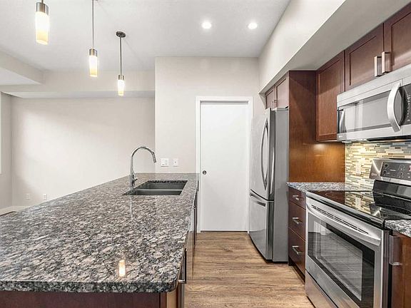 Open-concept layoutLarge breakfast barStainless steel appliancesIn-suite laundry