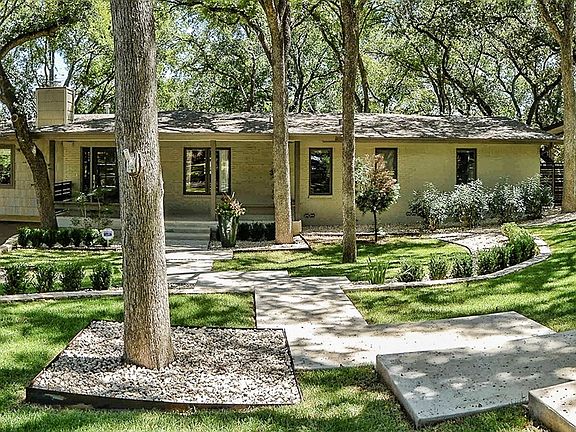 Charming home w/beautiful landscaping, mature trees & wide lot backing to Camp Mabry. Desirable neighborhood, central location convenient to UT, DT & excellent schools. Light & open w/walls of windows. Remodeled w/hardwoods & slate. Separate guest quarters w/kit, BR, BA & sitting area w/separate entry, may be used for studio or playhouse. Deck off breakfast rm nestled under a canopy of trees. Built-ins throughout. Off/Study/4thBR. Lots of storage. Room for pool.