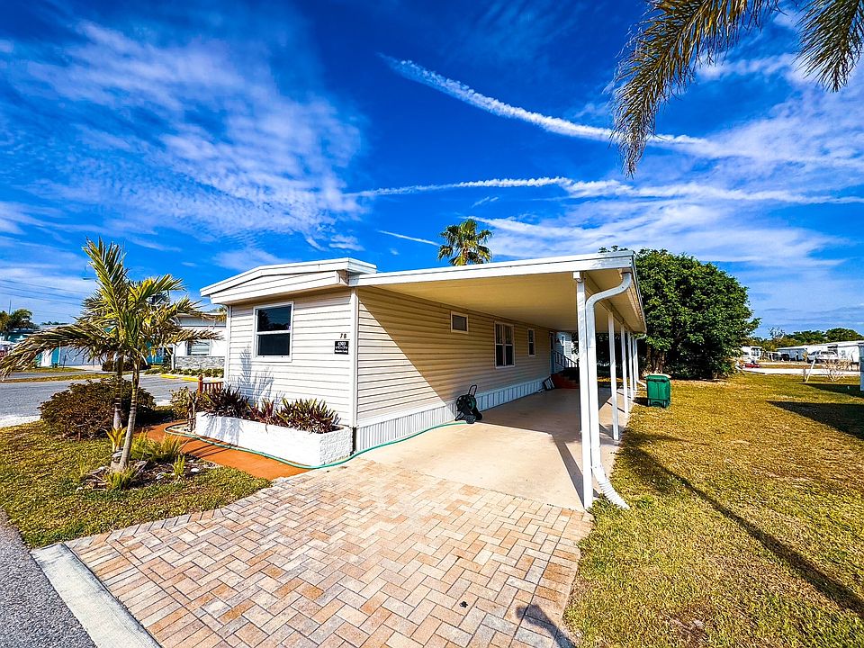 Winter is just around the corner! If you are looking for a place that has palm trees and an Ocean Breeze than look No further. This 2 Bedroom/ 2 bath home is in a Gated 55 Senior Community. That's packed full of amenities and social activities. This home is right next to the clubhouse and just down the road from the fishing pier with its brand new fishing station and the Tiki hut with kayaks. If you like to be busy than the clubhouse has many planned activities for you to join. If you want to sit back and relax than then you can do that too! This home comes with a florida room, back yard patio, carport that fits 2 cars nicely, a shed, AC unit, stainless appliances and updated kitchen cabinets and countertops. The florida room is right off the Livingroom/kitchen so there's plenty of room for entertaining guests and family when they come to visit. You will love our updated amenities, including a heated swimming pool, putt-putt golf, pickle ball, corn hole, fishing pier with a brand-new fishing station, and a fire pit to enjoy! The Harborview Club House features many planned activities and it's the social place to be. If you don't want to be active, then that's okay too!! Just relax and enjoy the beautiful view here at Harbor View On The Bay! The Monthly fee package for Harbor View On The Bay includes Land lease, Sewer, Estimated Water, Trash, Recycling, Yard Waste Services, 1 Gig Fiber Optic Internet, Gated Entry, Lawn Care, Property Taxes, and Use of the Resort Style Amenities for around $1,387.00 per month, Harbor View Ownership group contributes a generous yearly amount to the community's Social Fund in hosting planned activities and community events. Make plans to warm up THIS winter in the Florida sunshine- Call TODAY to schedule YOUR tour!