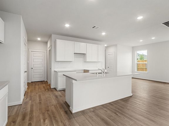 Options: 2 Story Great Room Ceiling | Custom Linen Cabinets | Refrigerator Wall Cabinet | Morel Omega Stone Countertops | Chrome Carpet, Tile & Whitfield Gray Vinyl Plank Flooring