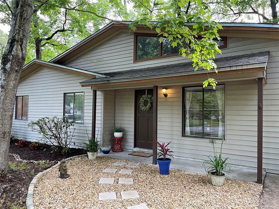 Great buy in Springtree! Take a look at this 3 bedroom 1 bath home in NW Gainesville close to the University, hospitals and all kinds of shopping and dining. The home features tile throughout the whole house (no carpet). Light and bright great room and dining area with vaulted ceiling, French doors and transoms letting in all kinds of natural light. There is an adjacent den perfect for additional living space or office. Spacious bedrooms, two with double windows. Kitchen has a stainless steel 4 burner gas stove with griddle. Inside laundry room. Large backyard with patio for outdoor dining and grill. Fenced yard with two gates and storage shed. Welcoming front porch with pavers ready for your guests. New roof in 2020, water heater in 2015.