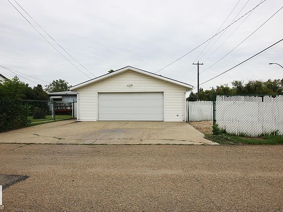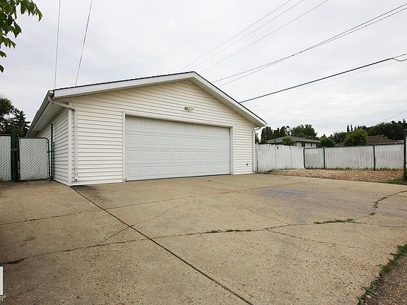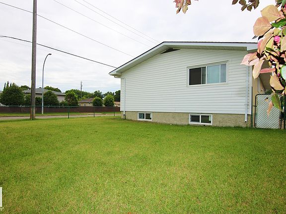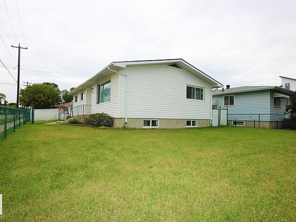Great Curb Appeal! Spacious Corner Lot, Huge Garage & Plenty of Parking! Welcome to this 1,219 sq. ft. fully finished bungalow! This home has seen many updates including windows, siding, soffits, fascia, shingles, furnace, hot water tank, stainless steel appliances, and a refreshed kitchen with updated cabinets. Offering 4 bedrooms plus a flex room that could be a 5th, 2 bathrooms, and a separate entrance for future suite potential-ideal for families or investors. The finished basement has a large rec room with a charming wood-burning fireplace. Outside features an extended double garage with space for up to 6 vehicles. The fully fenced and landscaped yard is split into two areas—ideal for dogs or tenants. This home is steps from Jubilee Park with its spray park, skating rinks, playground, and picnic areas. Also, close to shopping, public transportation, restaurants, the North Sask River Valley trails, and roadways including Yellowhead Trail and Anthony Henday. Pet & Smoke free! Don’t miss this one!