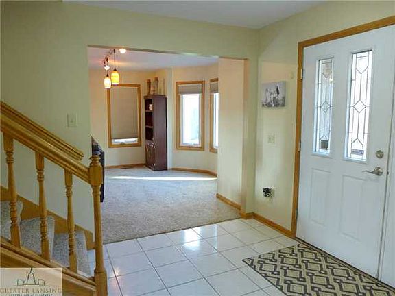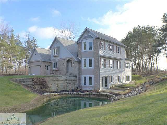 Welcome to 4304 E Howe Rd in Bath MI. Attractive 4 Bed 4.5 bath home on a quiet road with a park like setting, very nicely built home with pond, waterfall, and a hangar for all the larger toys like RV's, cars, and more. Updated kitchen with all new appliances. As you enter a large foyer, library to the left, large living room, dining area. Eat in kitchen with den and fireplace, great 3 seasons room and large deck off dining area. 2nd floor has master with two other nice sized bedrooms. Walk out lower level is completely finished with second kitchen for entertaining! Hangar 64 x 43 for storage! The home could be easily made into a 5th bedroom if necessary. Please call the office for all showings. Located just north of Chandler Crossing, Eagle Eye Golf Course and Hawks Next Course. Seller w ll offer $1500 credit to replace flooring in basement. Home is sitting minutes from MSU, shopping, dining and easy highway access.