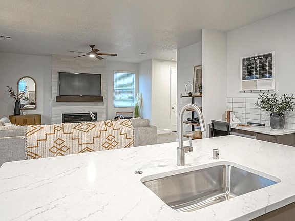 This exquisite former model home features an array of luxurious upgrades that set it apart from the rest. As you step inside, you'll be greeted by beautiful tile floors that flow seamlessly throughout the open-concept living spaces. The heart of the home has a beautifully appointed kitchen with sleek quartz countertops, perfect for preparing meals and entertaining guests. -- Relax in the cozy family room by the charming fireplace, creating a warm and inviting atmosphere. The spacious loft and bonus flex room offer versatile spaces to suit your lifestyle, whether you need an extra living area, home gym, or playroom. -- Retreat to the second-story primary suite, which opens onto a beautiful private deck overlooking the Sandia Mountains, perfect for enjoying your morning coffee.