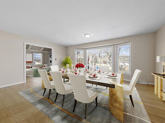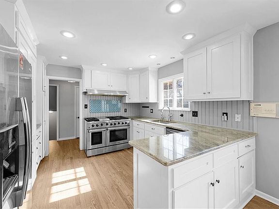 Inside, newly refinished hardwood floors and fresh paint create a bright, inviting space. The home features a remodeled primary suite, three large secondary bedrooms, and an updated hall bath. The chef’s kitchen boasts a high-end commercial-grade stove, granite counters with bar seating, and space for a casual dining table.