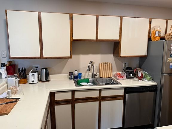 Don't miss this rarely available first-floor condo, freshly painted throughout and move-in ready! Enjoy a spacious living room with a cozy fireplace and direct access to a private patio-perfect for relaxing or entertaining. The patio can also be accessed from the primary bedroom and includes a convenient outdoor storage closet. This home offers an open dining area and a large breakfast bar, ideal for casual meals or hosting guests. The primary bedroom features a walk-in closet, and the unit includes a full-size washer and dryer for your convenience. A private one-car garage is included. Recent Updates: Fresh interior paint, new LED lighting, durable vinyl flooring, new dishwasher and water heater, updated bathroom vanity and medicine cabinet, new kitchen and bath faucets, and new blinds throughout. Move right in and start enjoying comfortable, maintenance-free living or make it your investment property!