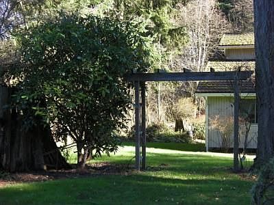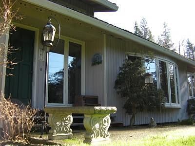 Welcome home to your Private retreat at the end of road! Unique Rural setting conveniently located near schools and shopping. Bright entry, Master on main features jetted soaking tub and his/her sinks, Office, Formal living, kitchen opens to family rm with propane stove, view of private backyard. Large deck for quiet evenings, entertaining, wood wrapped/thermal paned windows throughout. Open staircase to 4 bds, full bth. Horse shed, Gazebo, garden shed. Rented Guest hs features 2 bds, 2 full bth