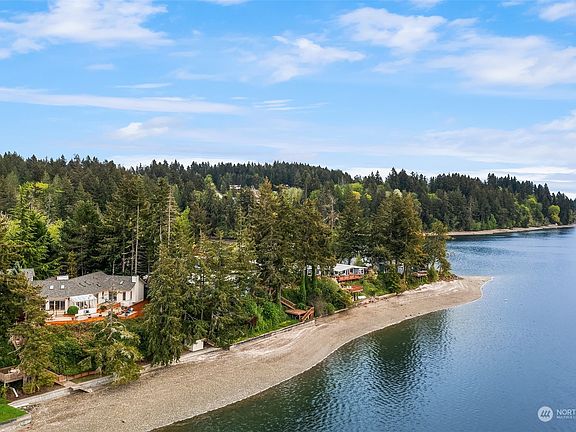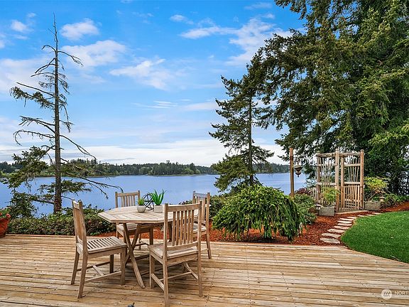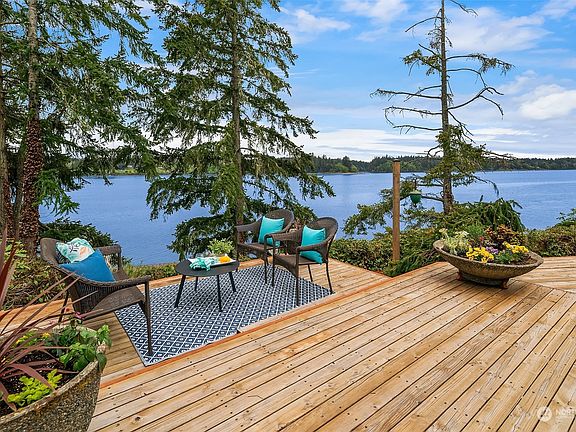 Custom waterfront home built in 1994 situated on .69 acres w/ 140' of waterfront (per assessor's field book record). Live the good life year-round w/ beautiful west-facing sunsets! Spending time boating, swimming, relaxing or nature watching has never been so easy. This private retreat offers a primary suite w/ a generous-sized sitting area, walk-in closets, luxurious bath & personal deck. The sprawling deck has built-in planters & perfect for dining al fresco or entertaining. Captivating views from almost every room w/ 10 skylights to add natural lighting throughout. Sun room adds more joy to those ever-present views. Security system, hardwd flrs, 2 fireplaces, central a/c, 2-car garage, new roof & an outdoor shower! Paradise awaits!