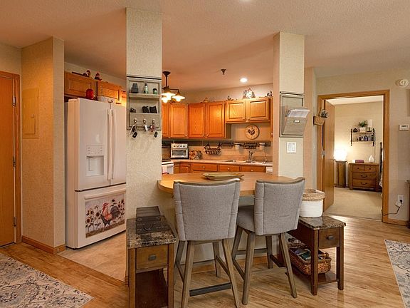 Larger one level spacious 2 bedroom condo now available! One of the larger units in the complex with 1100 sqft. You'll love the open design with the large living room that gets lots of light from the private patio. The kitchen has a breakfast bar and lots of cupboards. Lots of storage options with a double entry closet, a pantry, and a private, 5 X 5 storage closet. Master bedroom has a walk in closet and it's own full bathroom. The 2nd bedroom is just as large and has a double closet, it's own full bathroom, that contains the in-unit laundry. All appliances are included for your convenience. This is a 55+ neighborhood, zero entry, secure building, with alarm system and in-unit pull switches that connect with emergency services. With $300/month association fees, you'll never have to mow or shovel again! Take advantage of the several common areas, such as the courtyard, dining area, library/study, game room, exercise room, wood-working room as well as a bedroom that could be rented out to your guests for the evening. The living room flooring has been updated and the light fixtures in the kitchen as well. Easy access to the trails. Act quickly as these units sell fast, call your real estate agent today!